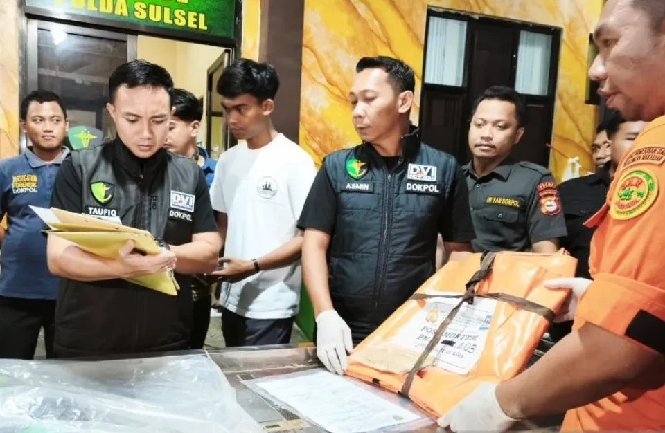 Setibanya di Makassar, bagian tubuh korban langsung diarahkan ke ruang forensik untuk penanganan lanjutan.